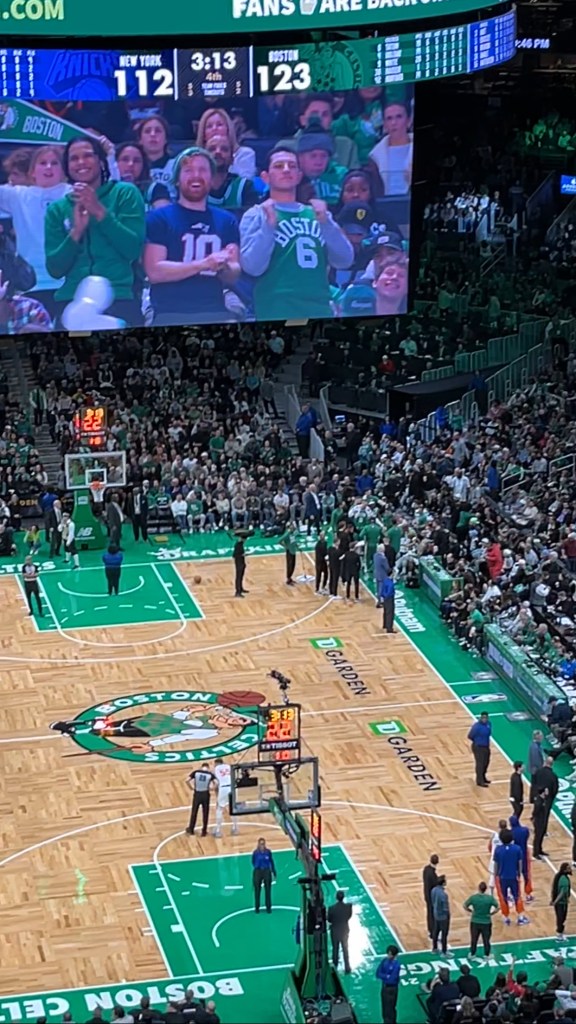 The game was great and of course the Celtics won. They played the Knicks, so the energy within the stadium was insane. Everyone knows Boston vs. New York is a classic match up. We saw Jaylen Brown get ejected, for no reason in my opinion, made it on the jumbo-tron, and witnessed a screaming match between a couple Yankees and Redsocks fans. I’d say that was a successful first day!